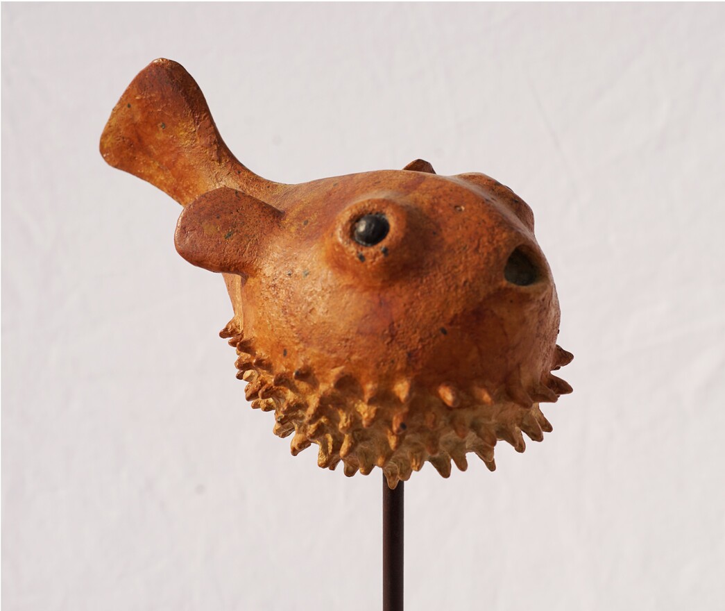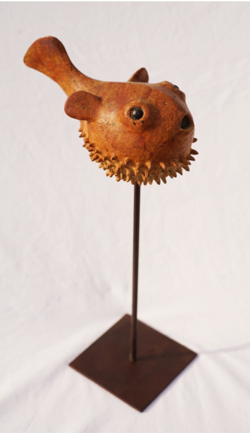 Bronze con peana de hierro Pez 13,5 x 15 x 5 cm Base 9 x 9 cm Altura 24 cm